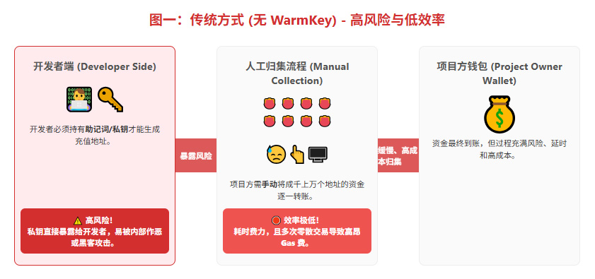 通过上图,让我们清晰地对比传统方式(无WARMKEY)与WARMKEY架构,并解释WARMKEY旨在解决的痛点。