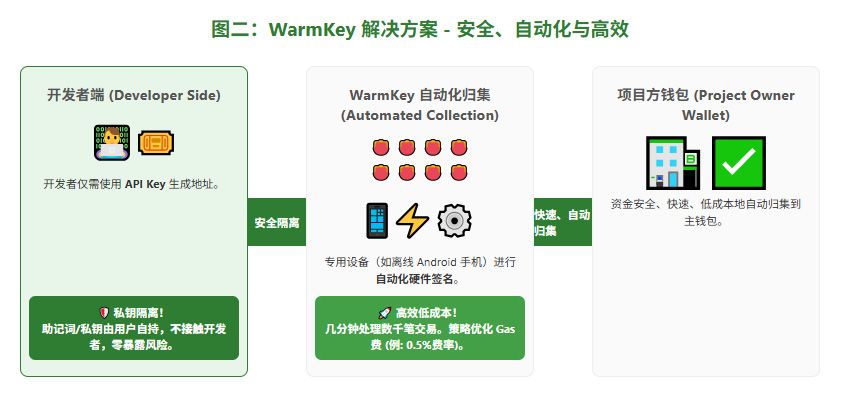 开发者绝不应该接触私钥或客户资金——但必须保持自动化。